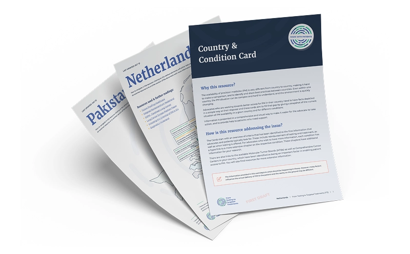 Visual country-level snapshots highlighting precision medicine availability, access gaps, and implementation readiness across specific diseases and geographies.